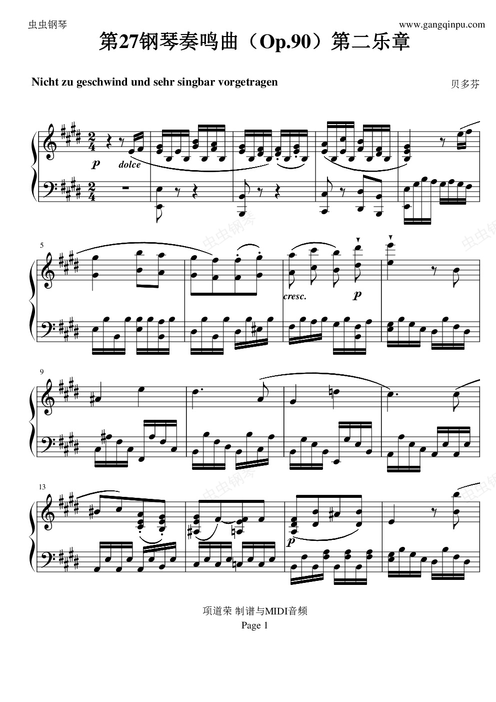 主题共出现5次:第1小节;第70小节;第140小节;第230小节;第276小节。
