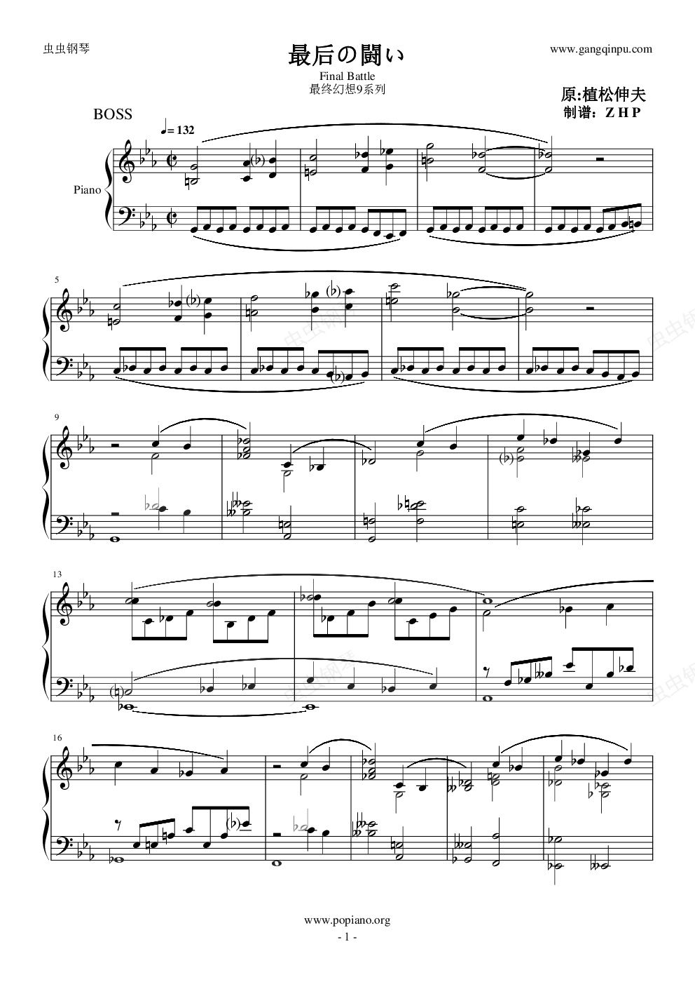 钢琴谱:最终幻想9 最后的BOSS(BGM)!!