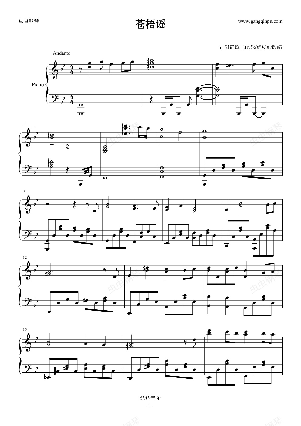 钢琴谱:古剑奇谭二配乐苍梧谣
