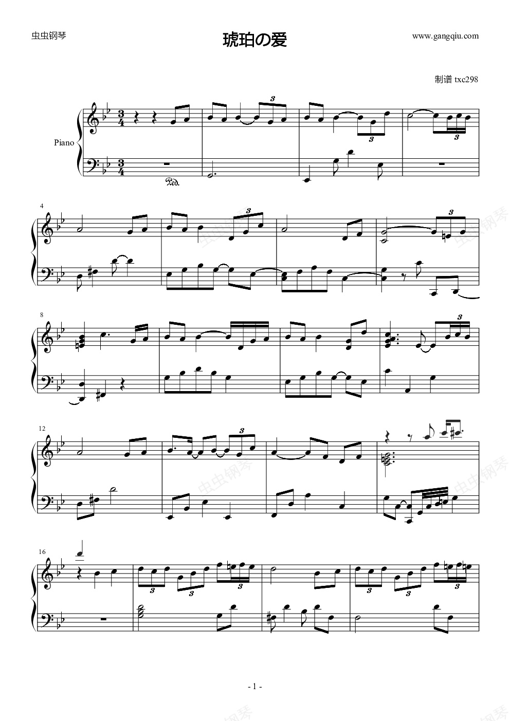 钢琴谱:琥珀の爱 (空の轨迹背景音乐)