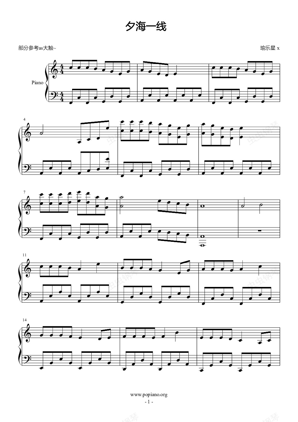 您的位置: 首页 > 钢琴谱库 > 夕海一线