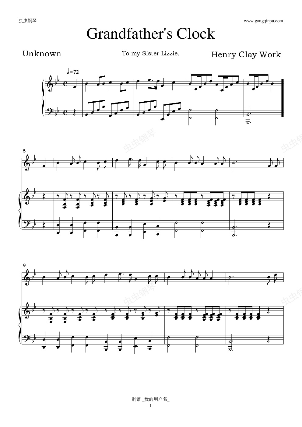 钢琴谱:Grandfathers Clock 作者:Henry Clay Work