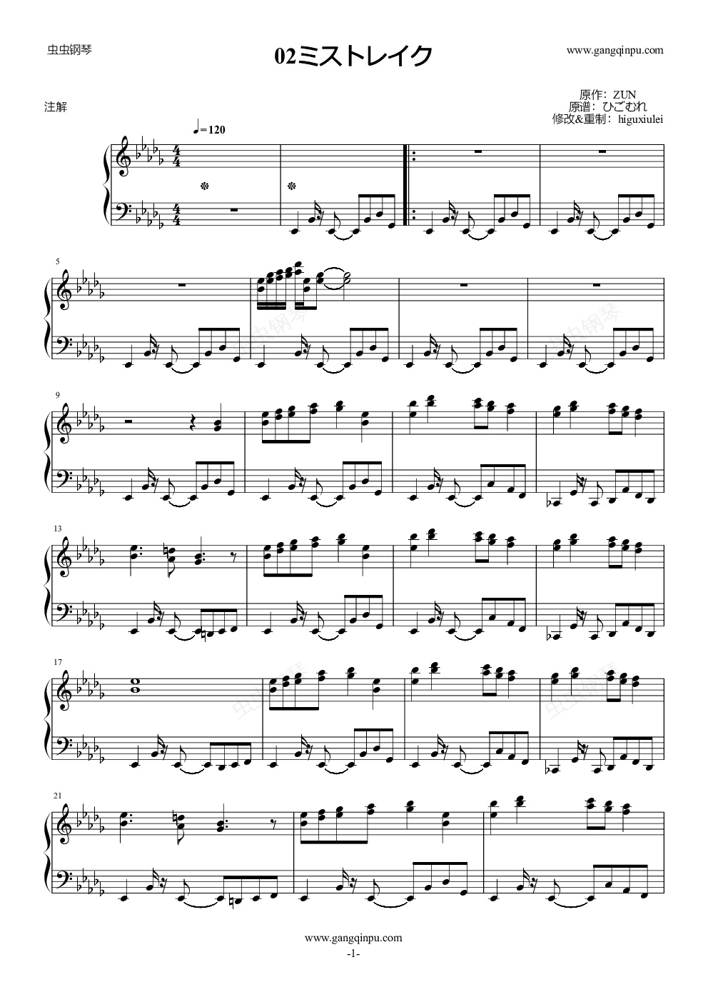 钢琴谱:ミストレイク