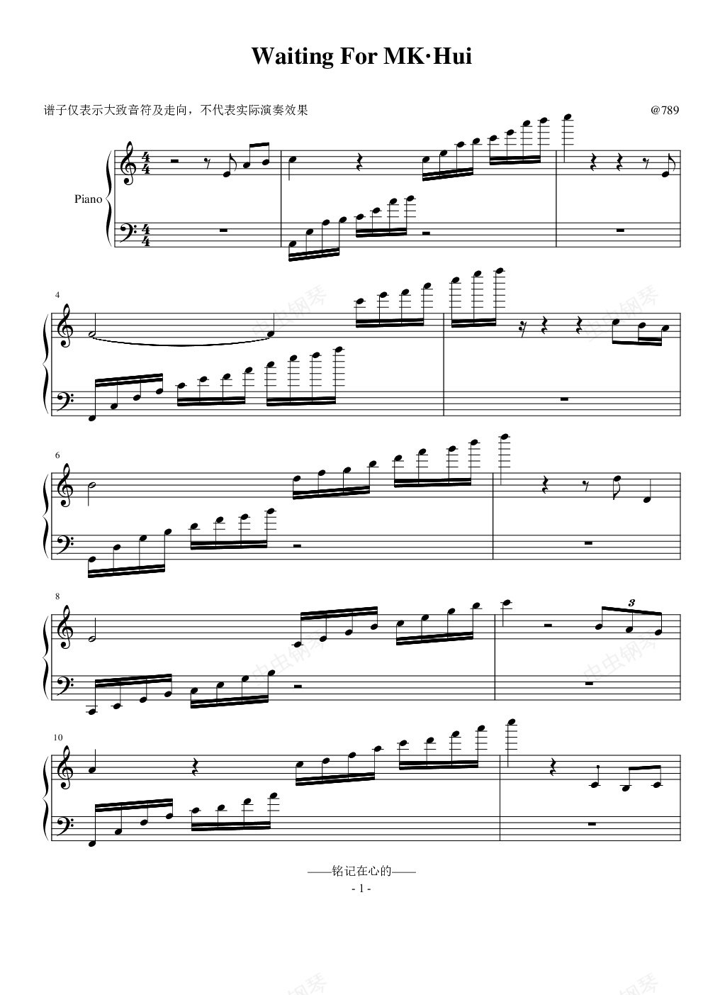 钢琴谱:Waiting for MK·Hui