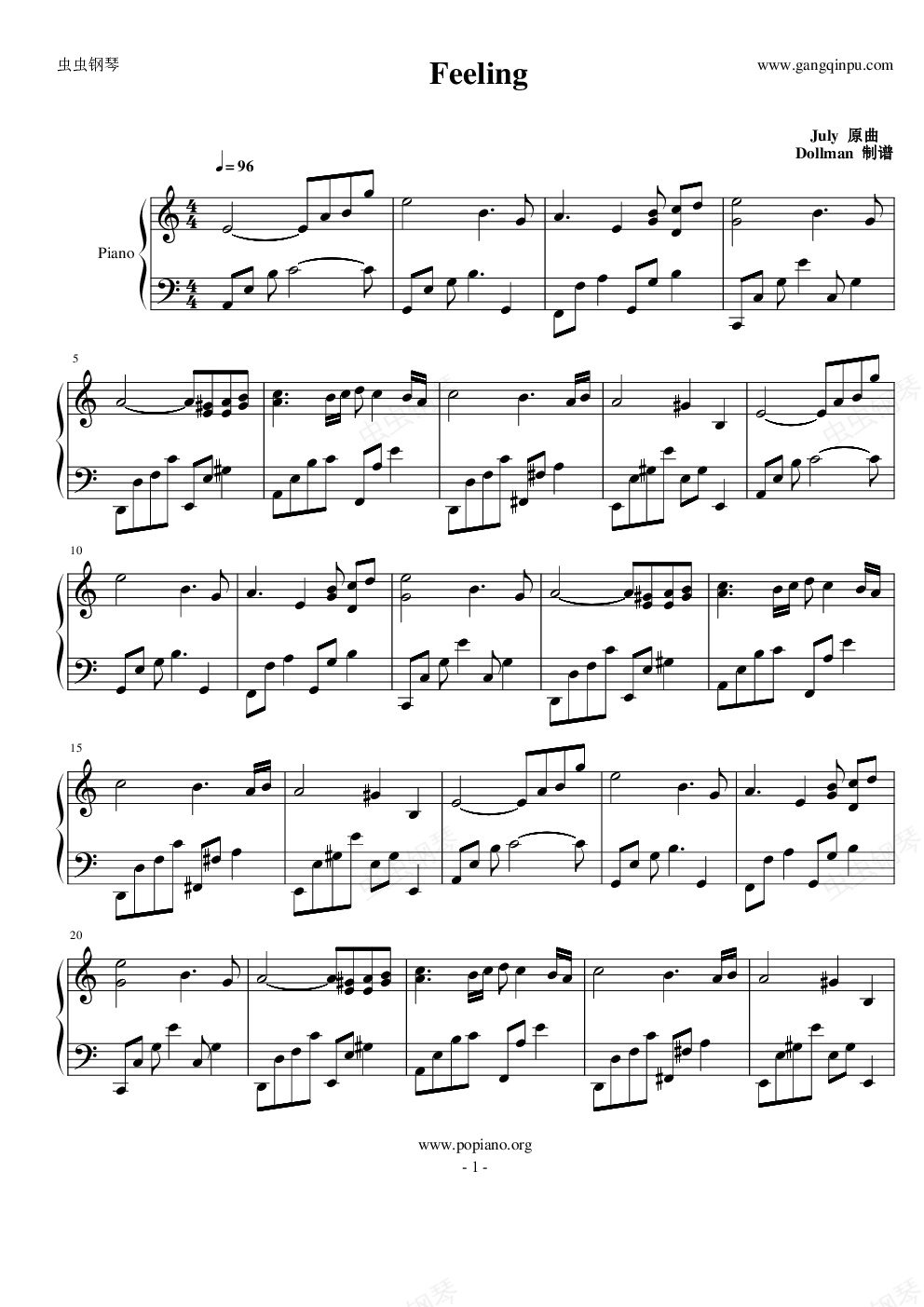 钢琴谱:Feeling—July
