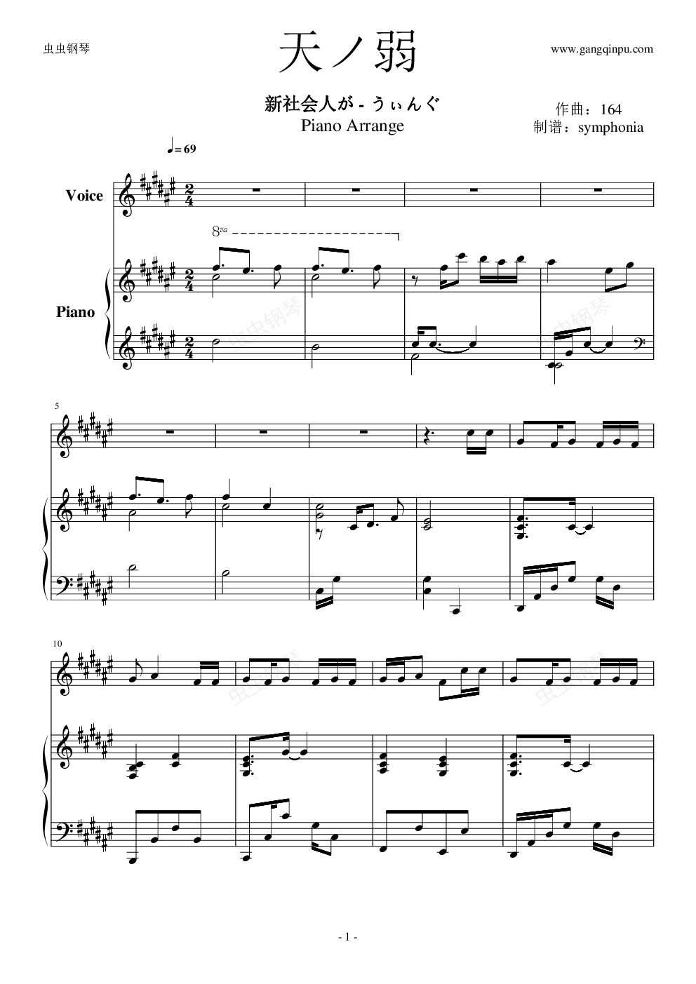 钢琴谱:【新社会人が】天ノ弱 piano ver.