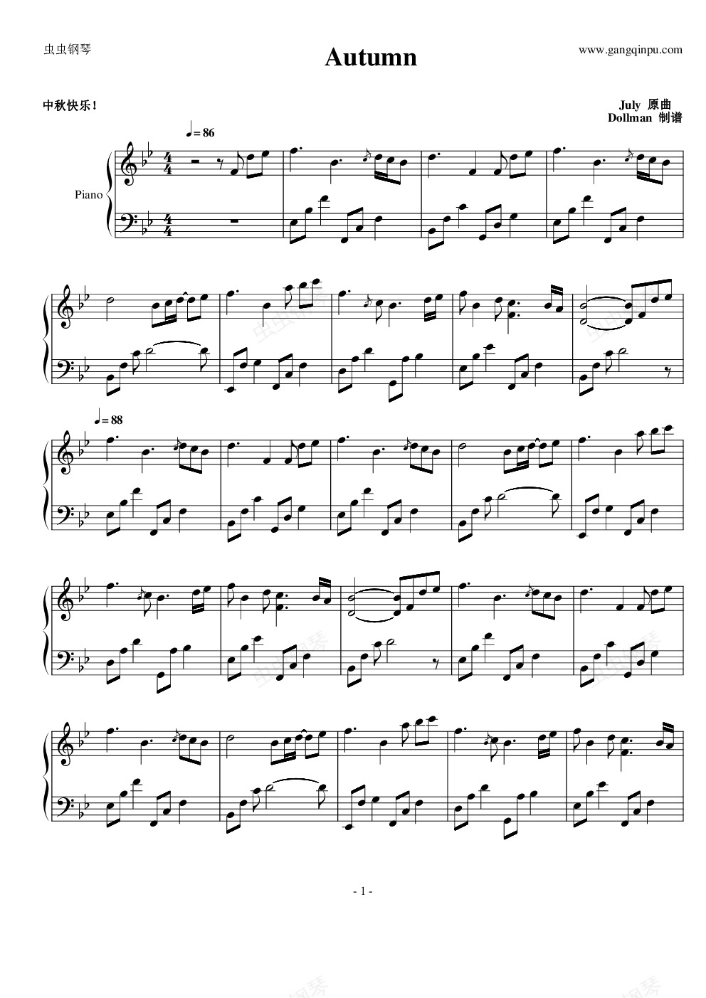钢琴谱:Autumn—July