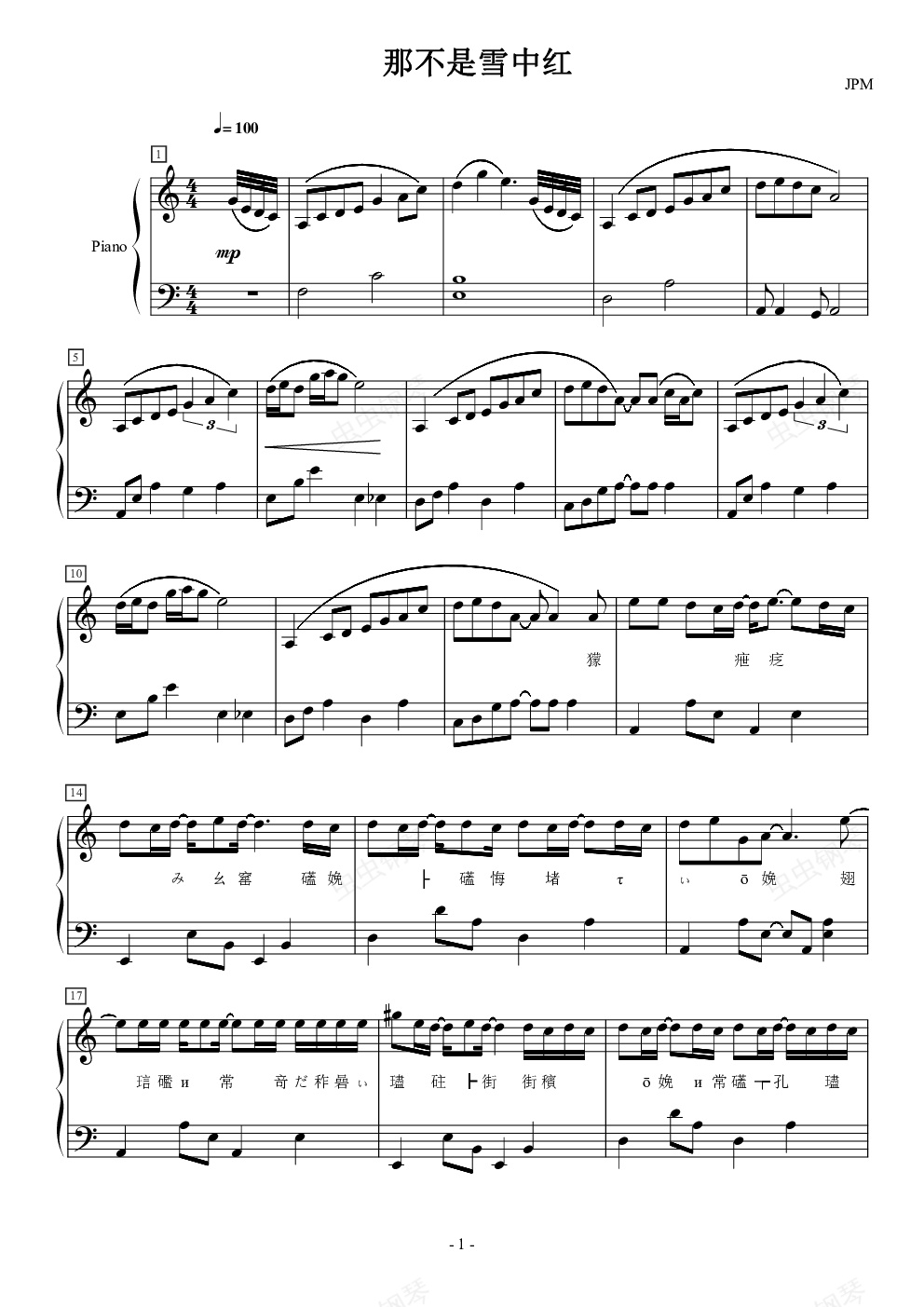 钢琴谱:那不是雪中红