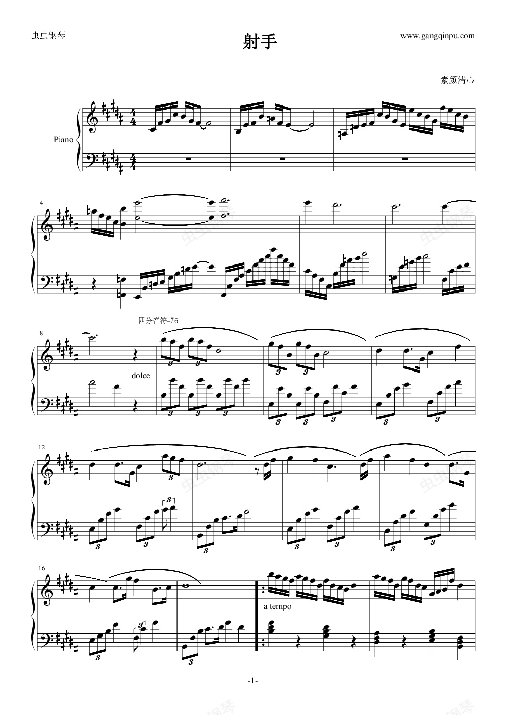 钢琴谱:射手
