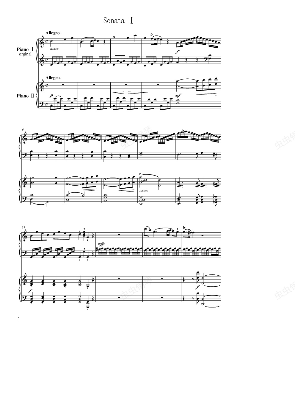 钢琴谱:Sonata In C Major, K 545双钢琴