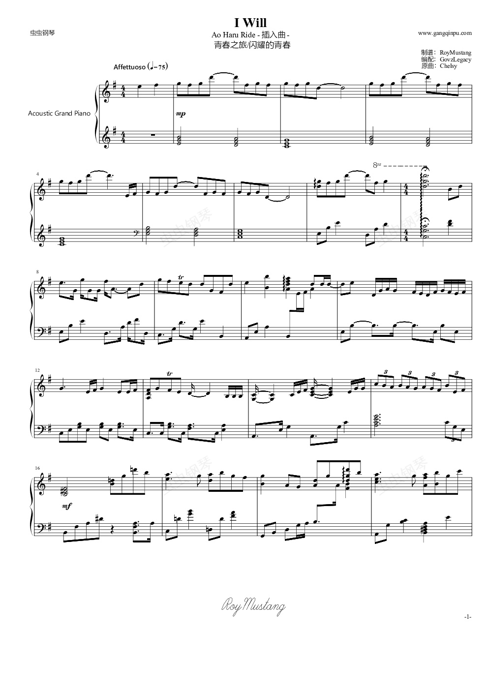 钢琴谱:[青春之旅/闪耀的青春]【I Will】- 插入曲 -