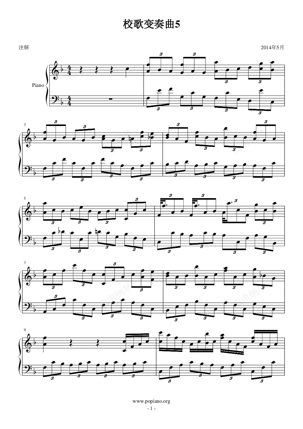 钢琴谱:校歌变奏曲5——寂静的晨曲