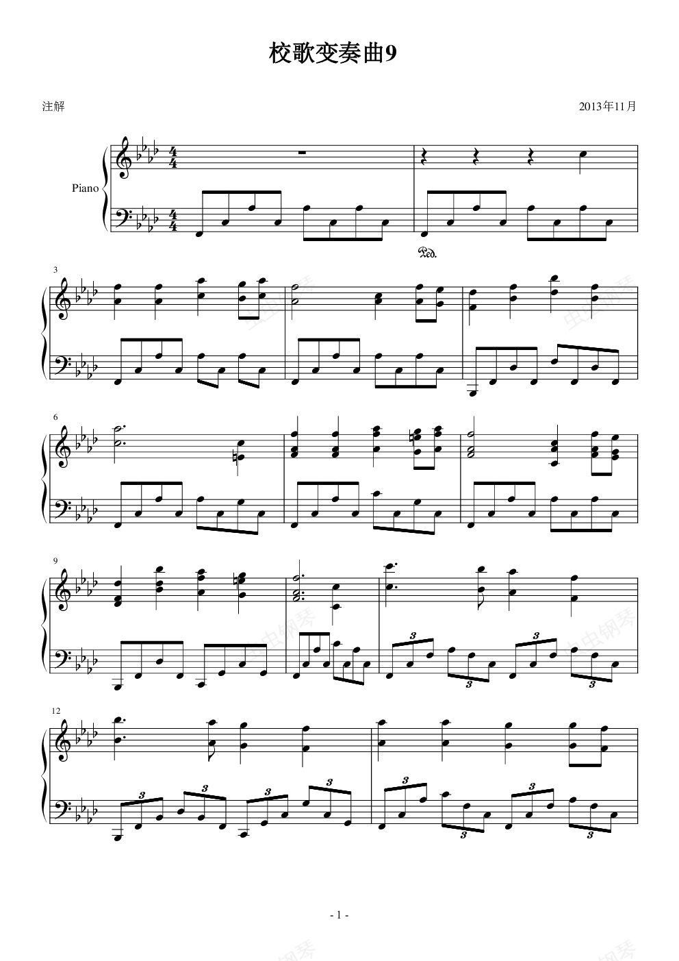 钢琴谱:校歌变奏曲9——绝望的一曲