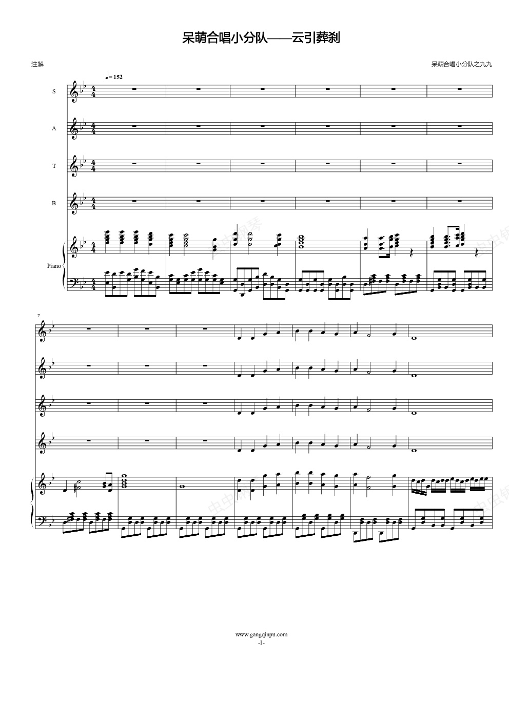 钢琴谱:呆萌大合唱团队——云引葬刹