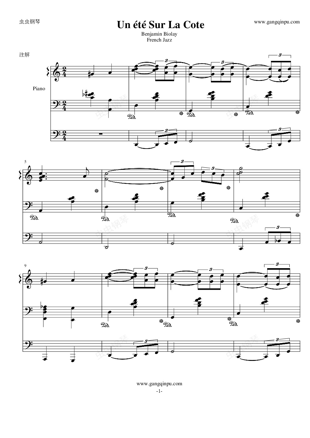 钢琴谱:Un été sur la côte - French Jazz