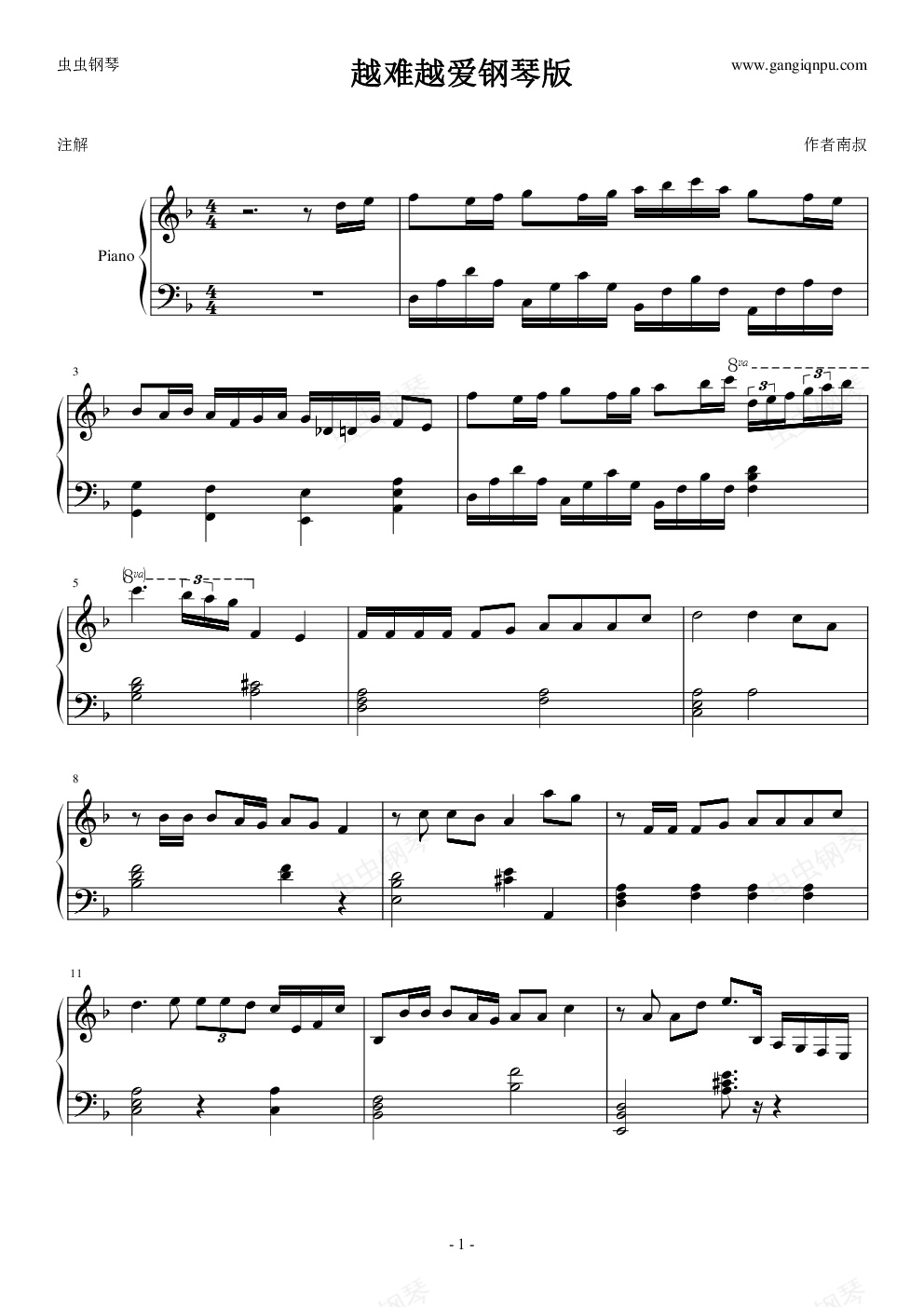 钢琴谱:越难越爱钢琴简单通俗演奏版