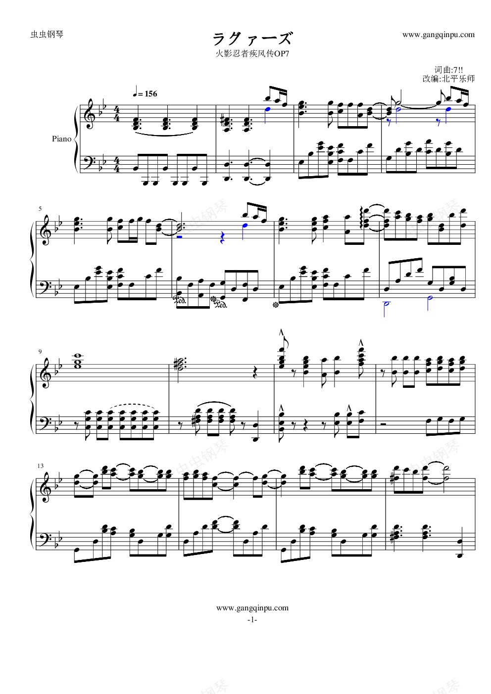 钢琴谱:火影忍者OP7--ラグァーズ