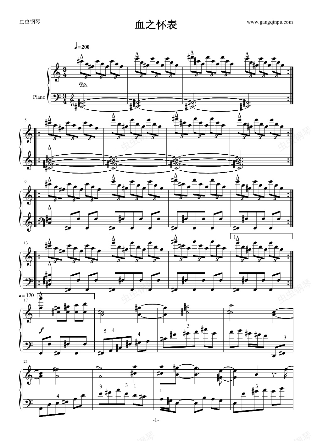 钢琴谱:女仆与血之怀表