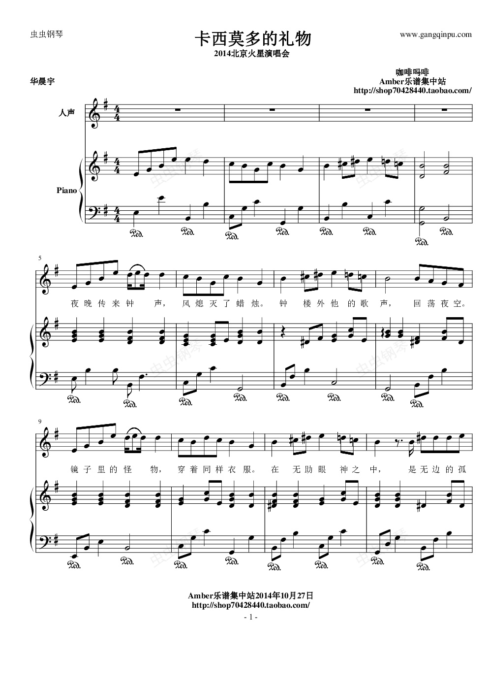 钢琴谱:《卡西莫多的礼物》钢琴伴奏谱
