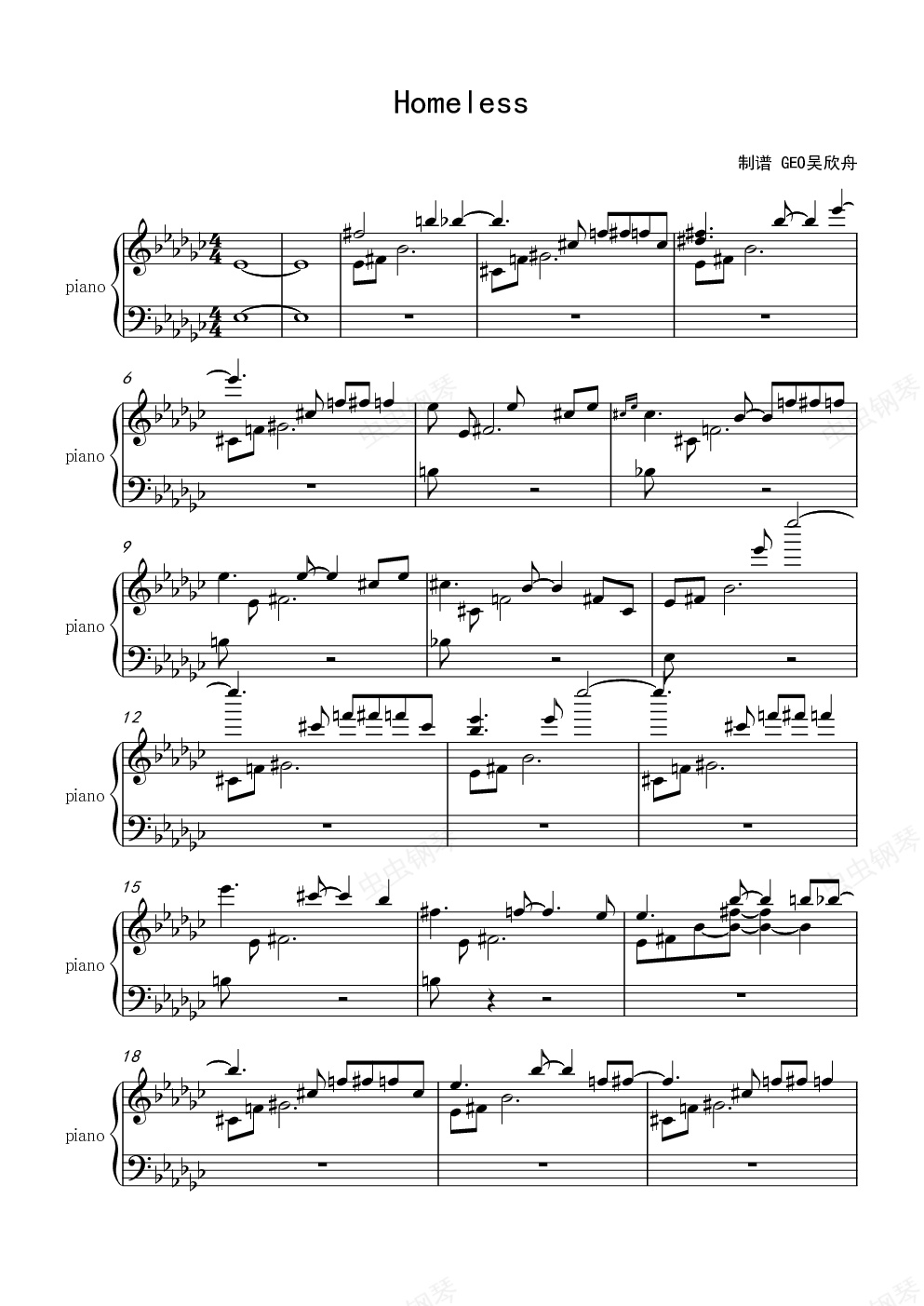 钢琴谱:homeless man plays beautiful(制谱)