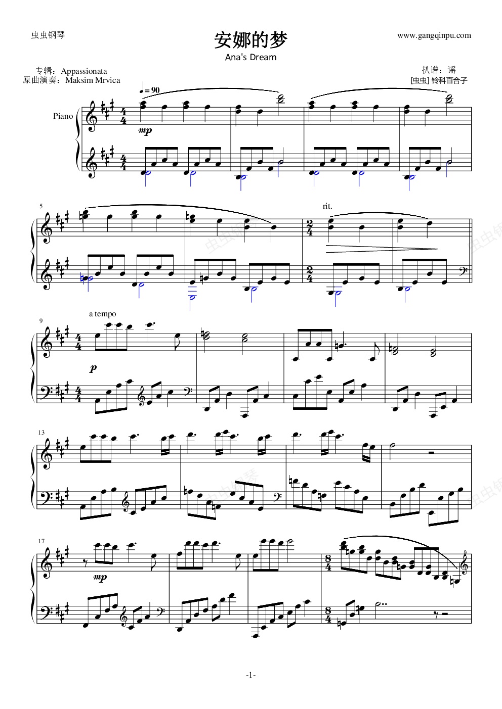 钢琴谱:安娜的梦 Anas Dream