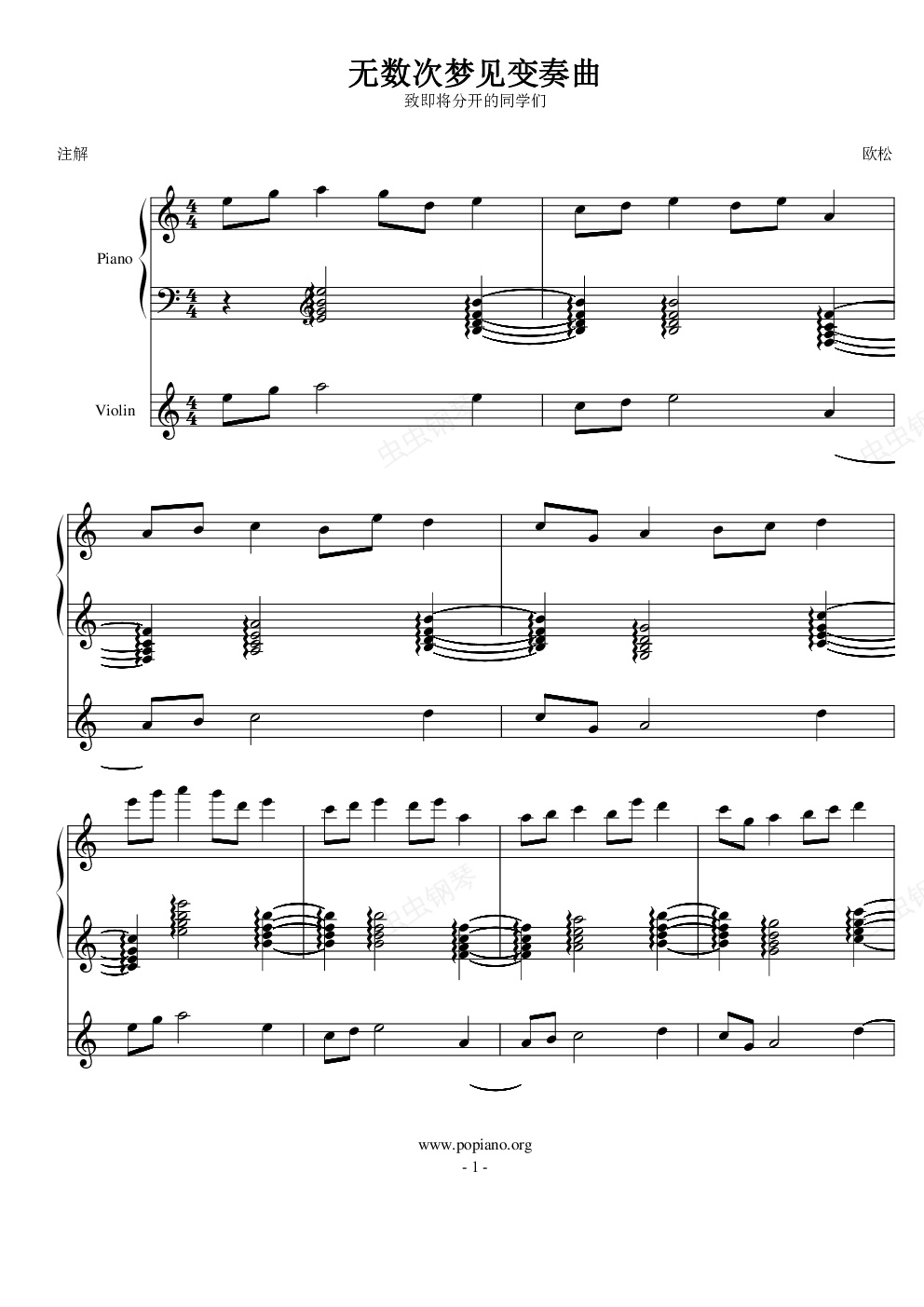 钢琴谱:无数次梦见变奏曲