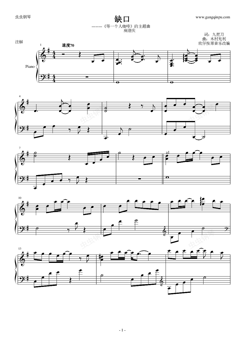 钢琴谱:缺口-《等一个人咖啡》的主题曲