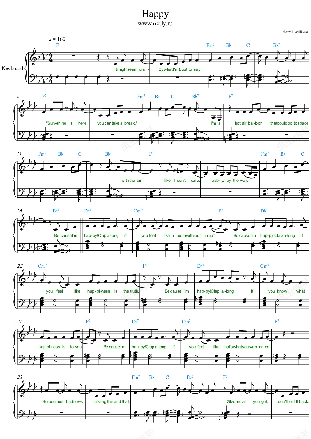 钢琴谱:Happy-pharrell(神偷奶爸 插曲)