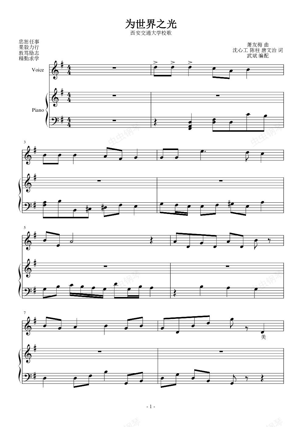钢琴谱:西安交通大学校歌 钢琴版