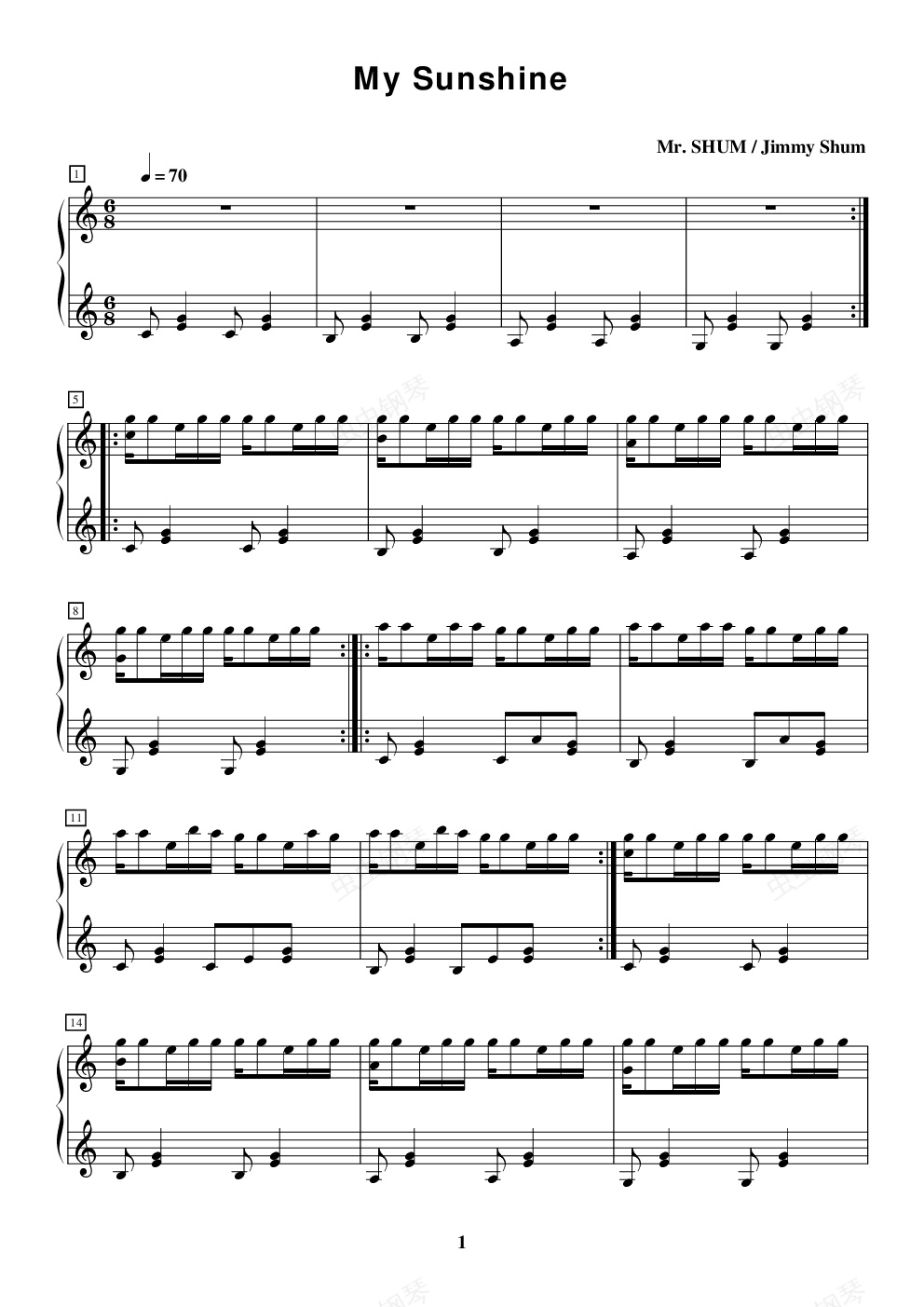 钢琴谱:美丽生命