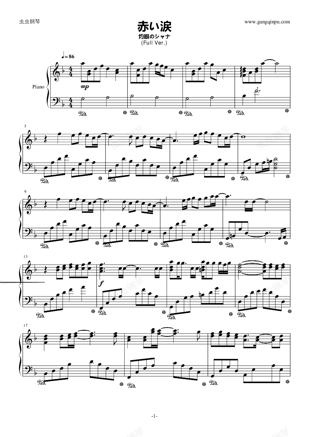钢琴谱:赤い涙(Full Ver.)---剧场版 灼眼のシャナ挿入歌