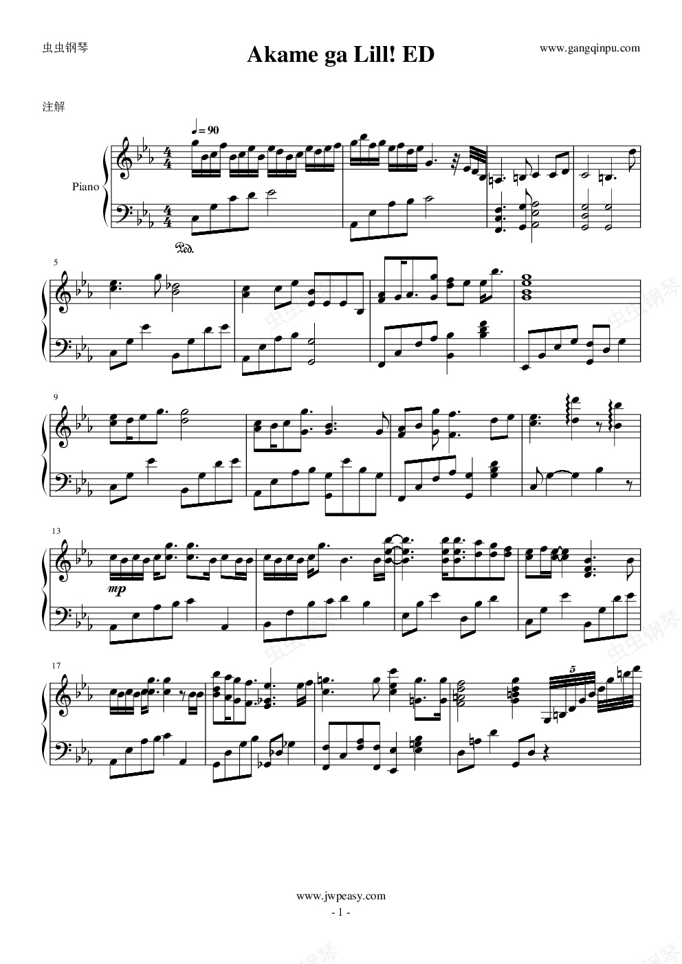 钢琴谱:斩赤红之瞳ED1钢琴独奏