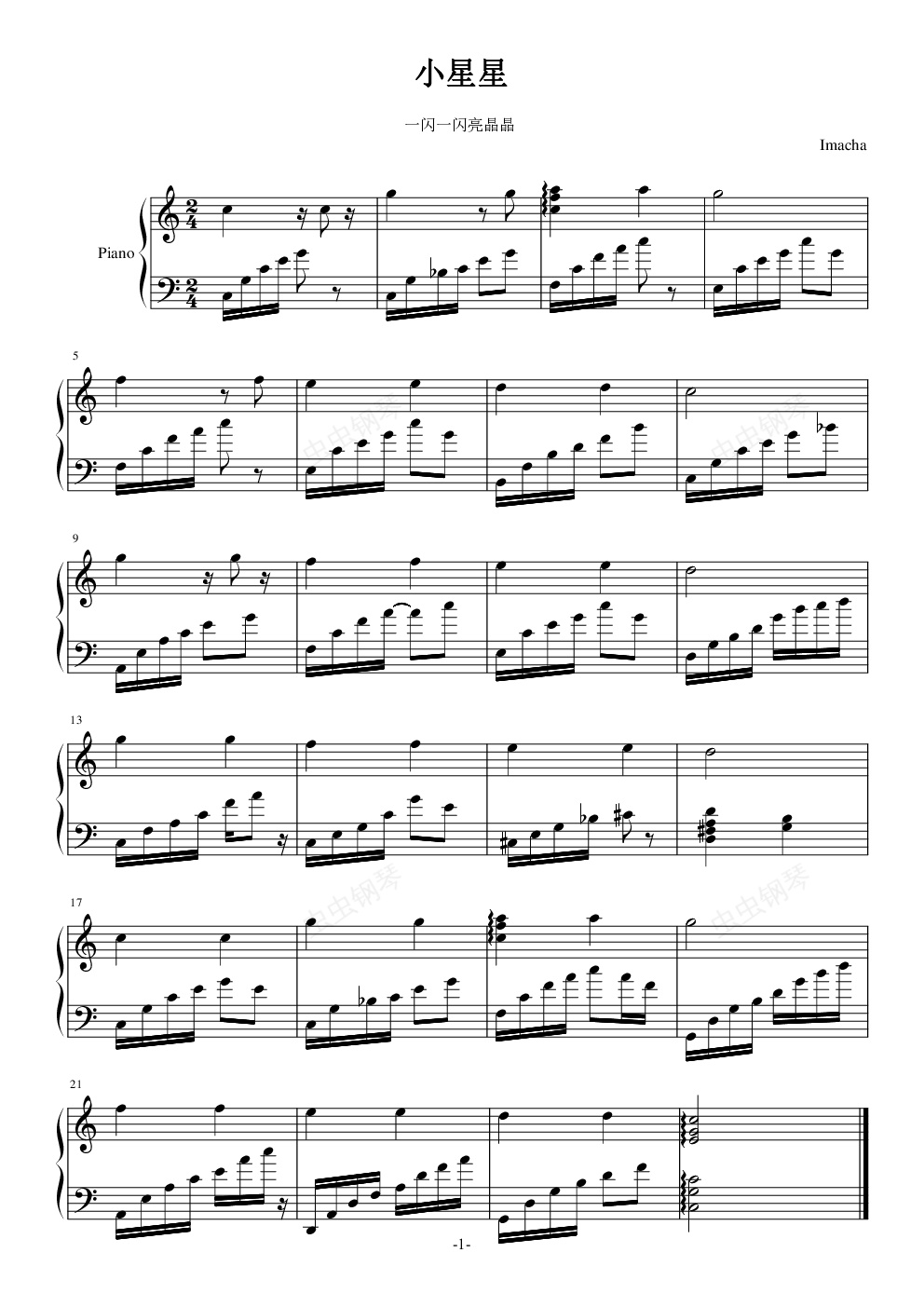 钢琴谱:小星星