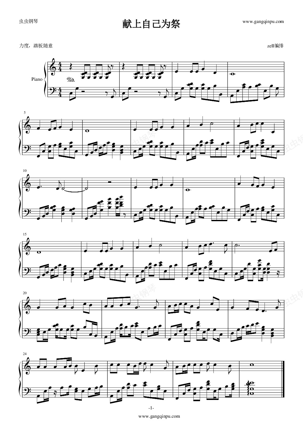 钢琴谱:献上自己为祭(基督教歌曲)