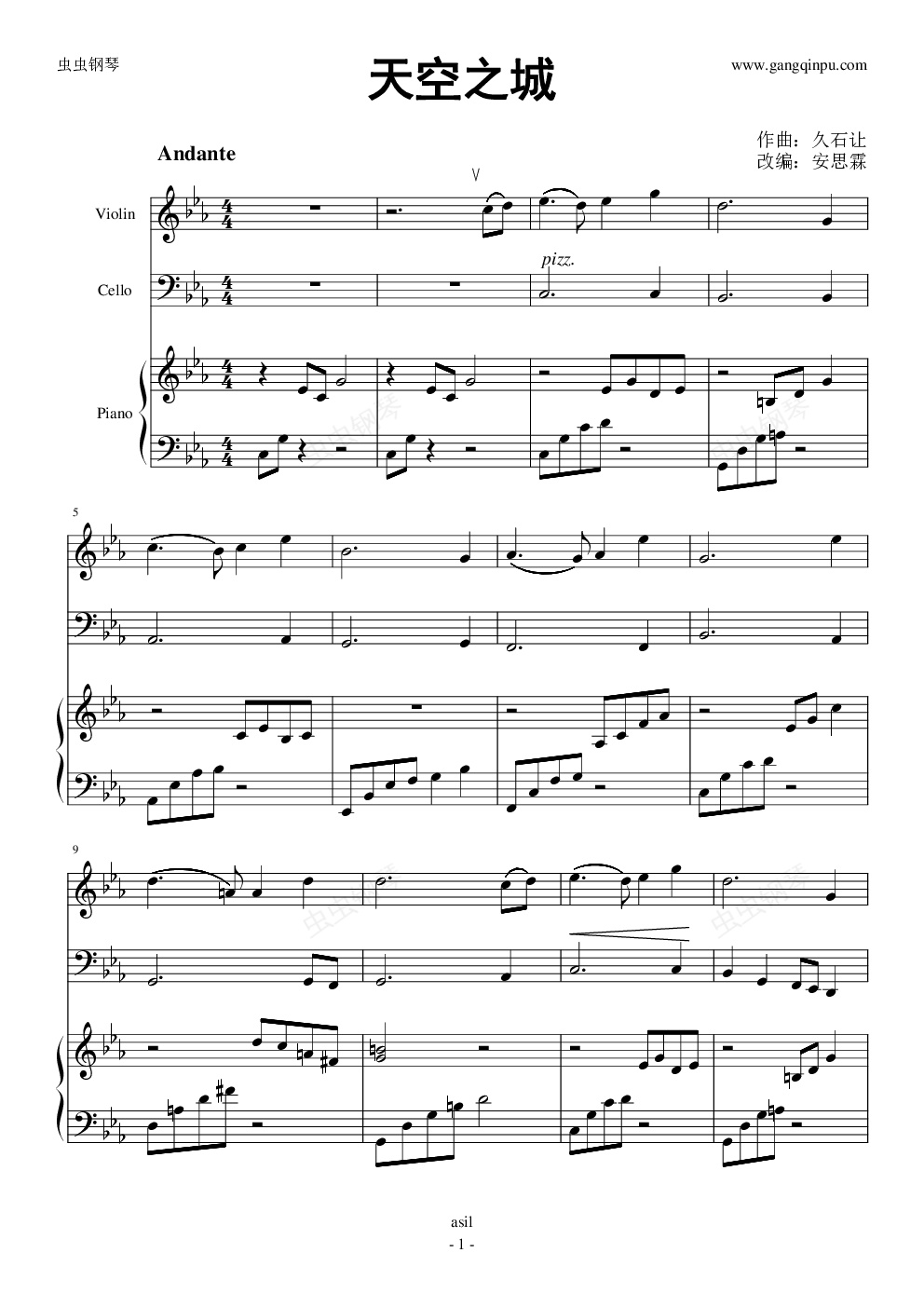 钢琴谱:天空之城(小提琴大提琴钢琴)