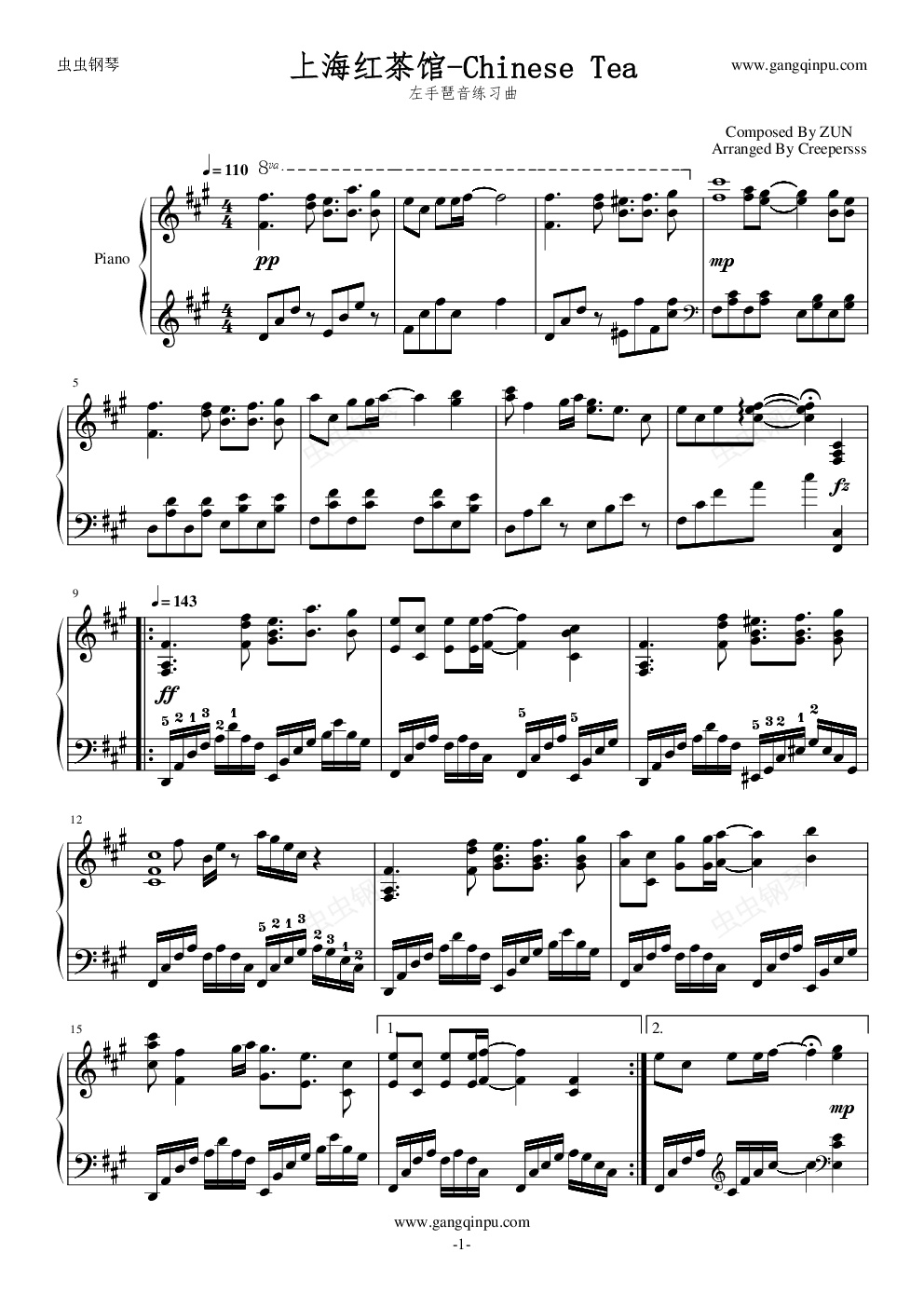 钢琴谱:【东方project】上海紅茶馆-Chinese Tea