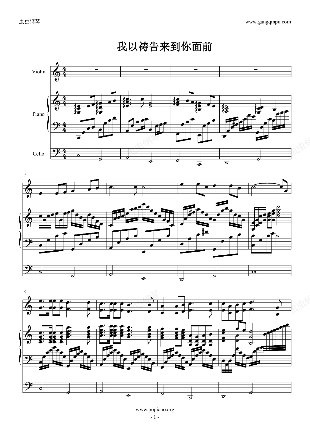 钢琴谱:我以祷告来到你面前