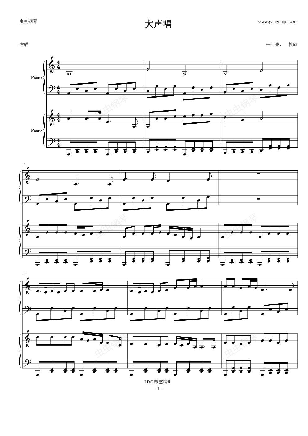 钢琴谱:大声唱