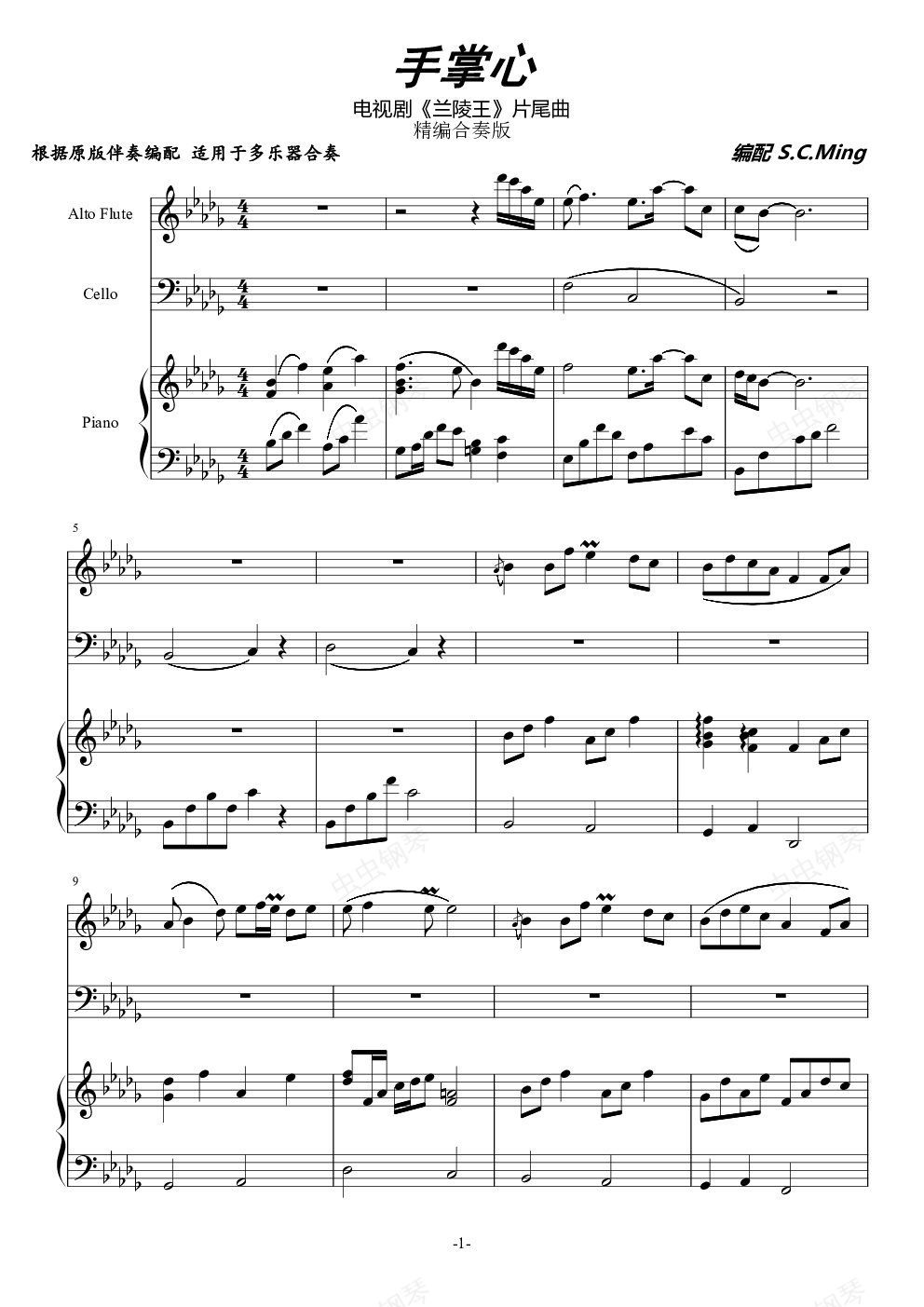 钢琴谱:手掌心《兰陵王》片尾曲精编合奏版