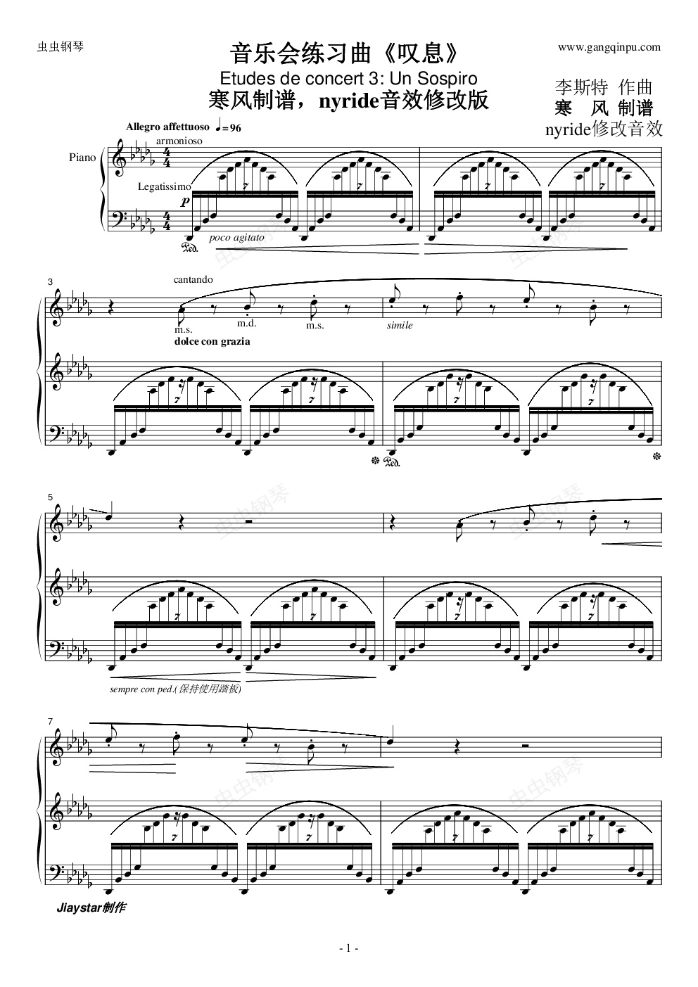 钢琴谱:寒风制《李斯特叹息》谱音效修改版