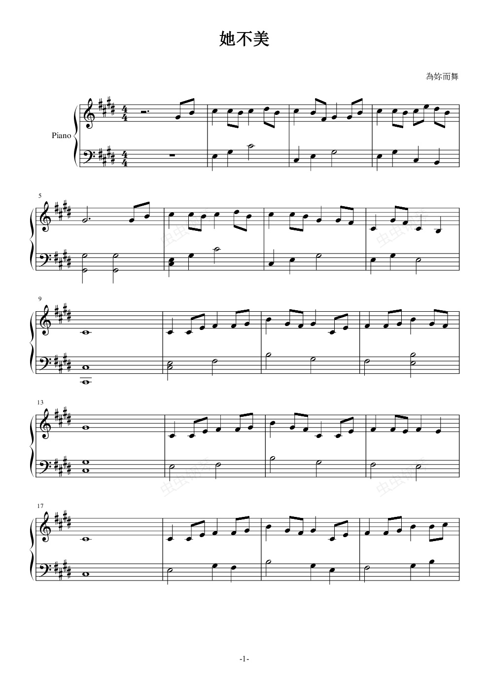 钢琴谱:她不美