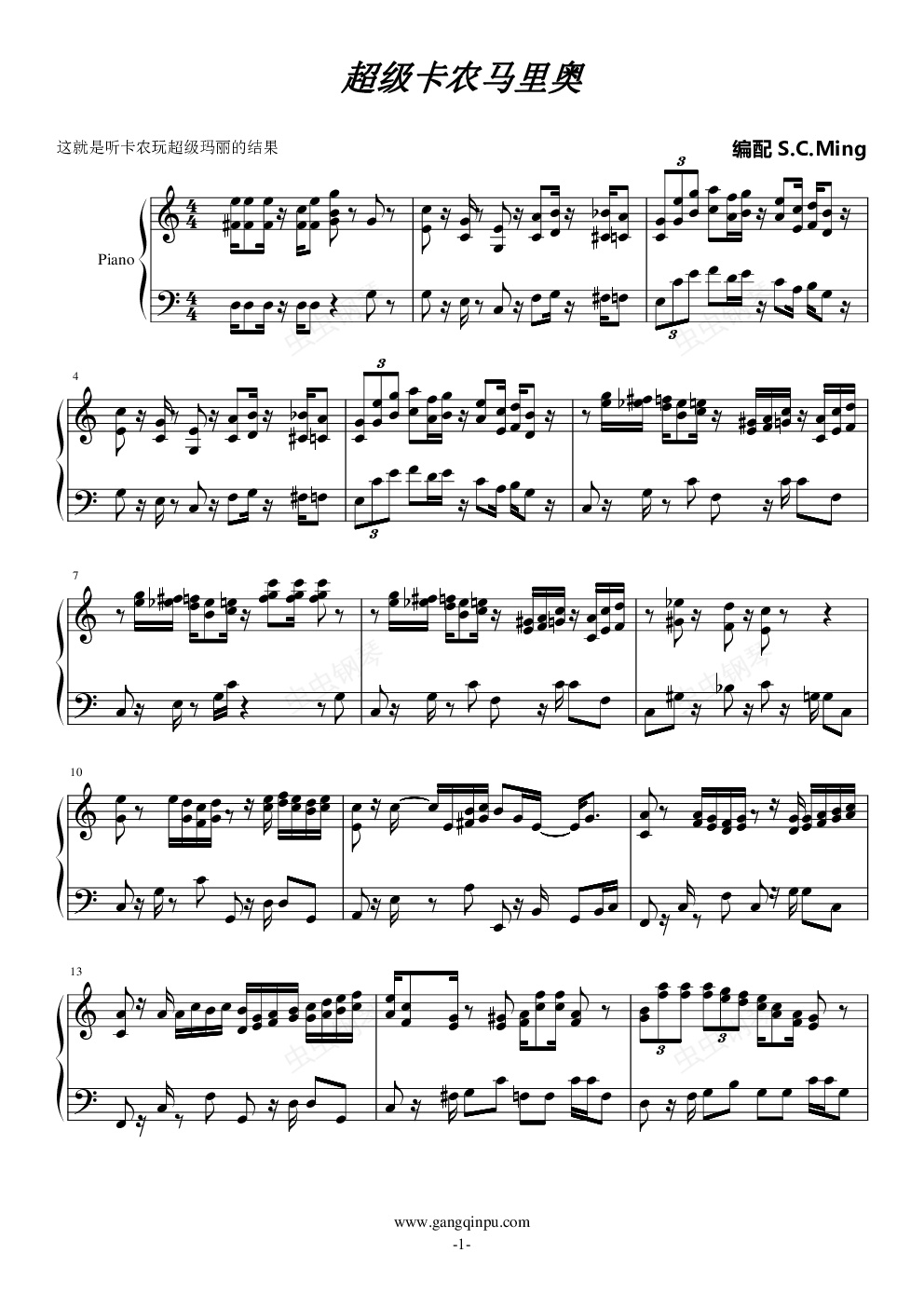 钢琴谱:玛丽奥的隔壁老王叫卡农