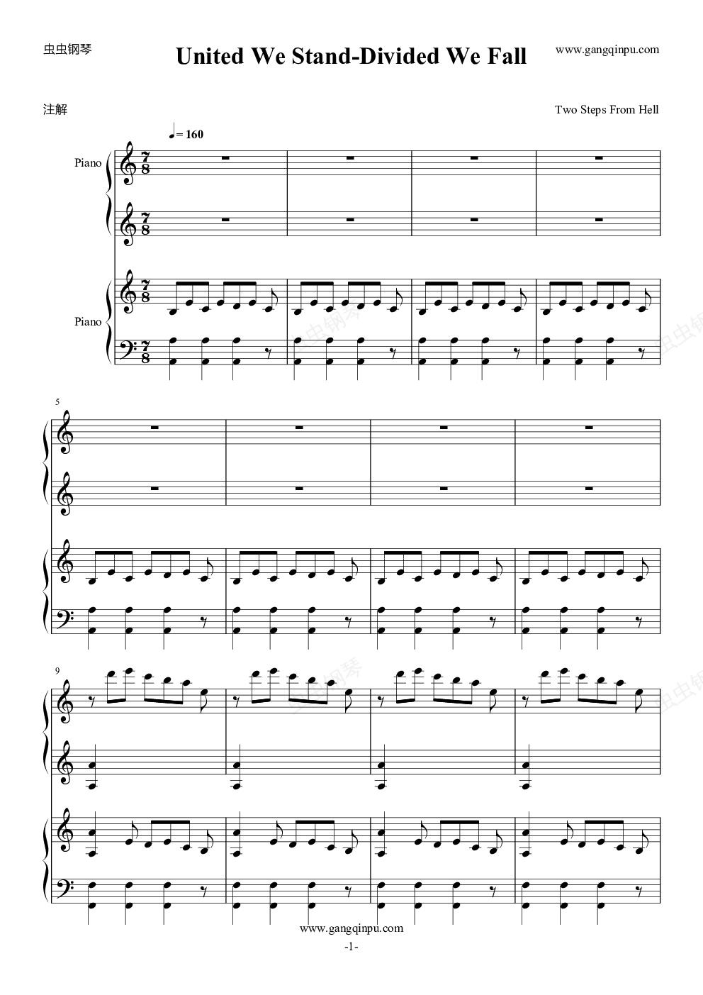 钢琴谱:Two Steps From Hell------United we stand-Divided we fall