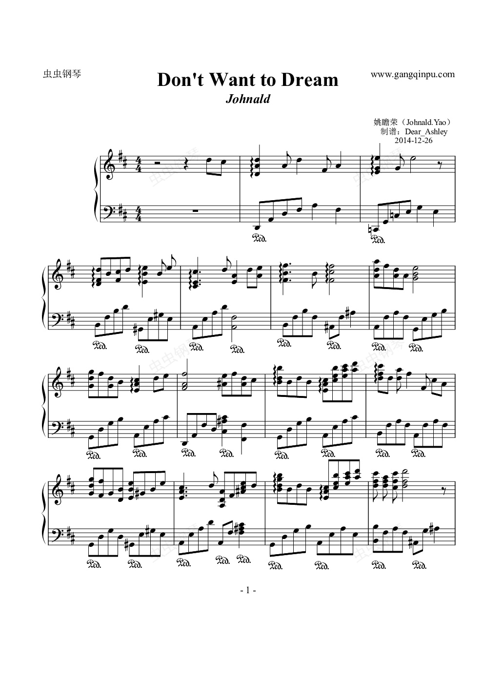 钢琴谱:Dont Want to Dream(钢琴曲)