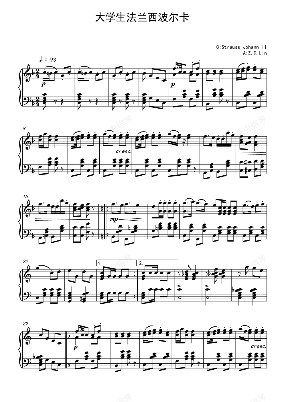 钢琴谱:大学生法兰西波尔卡(2015年维也纳新年音乐会曲目钢琴改编版)