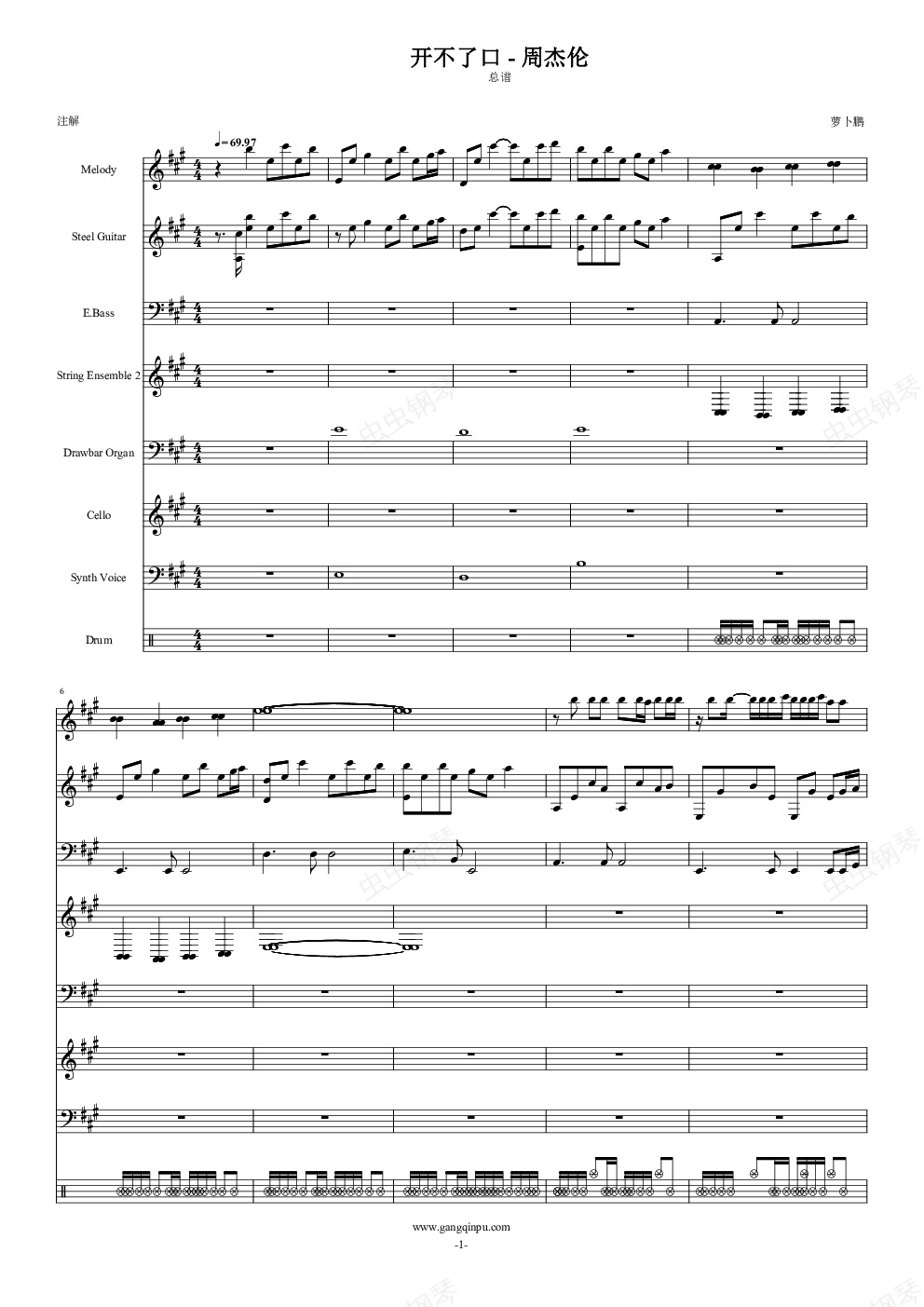 钢琴谱:开不了口 - 周杰伦(总谱)
