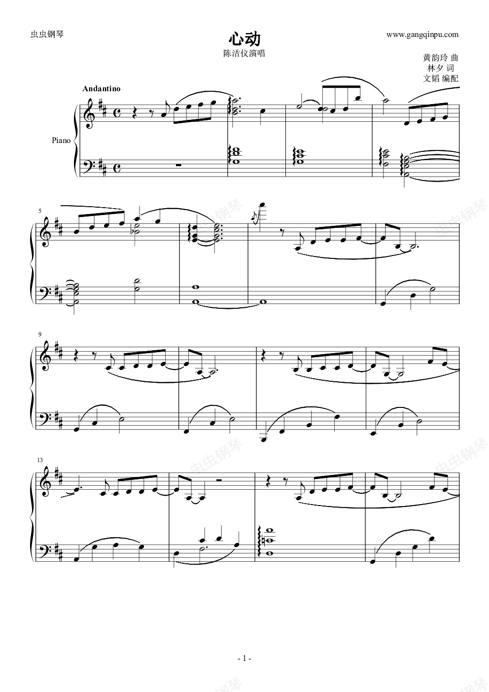 钢琴谱:心动
