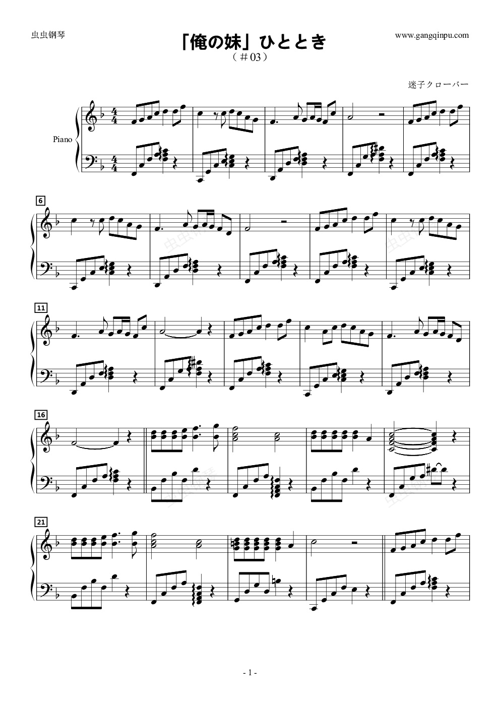 钢琴谱:「俺の妹」ひととき