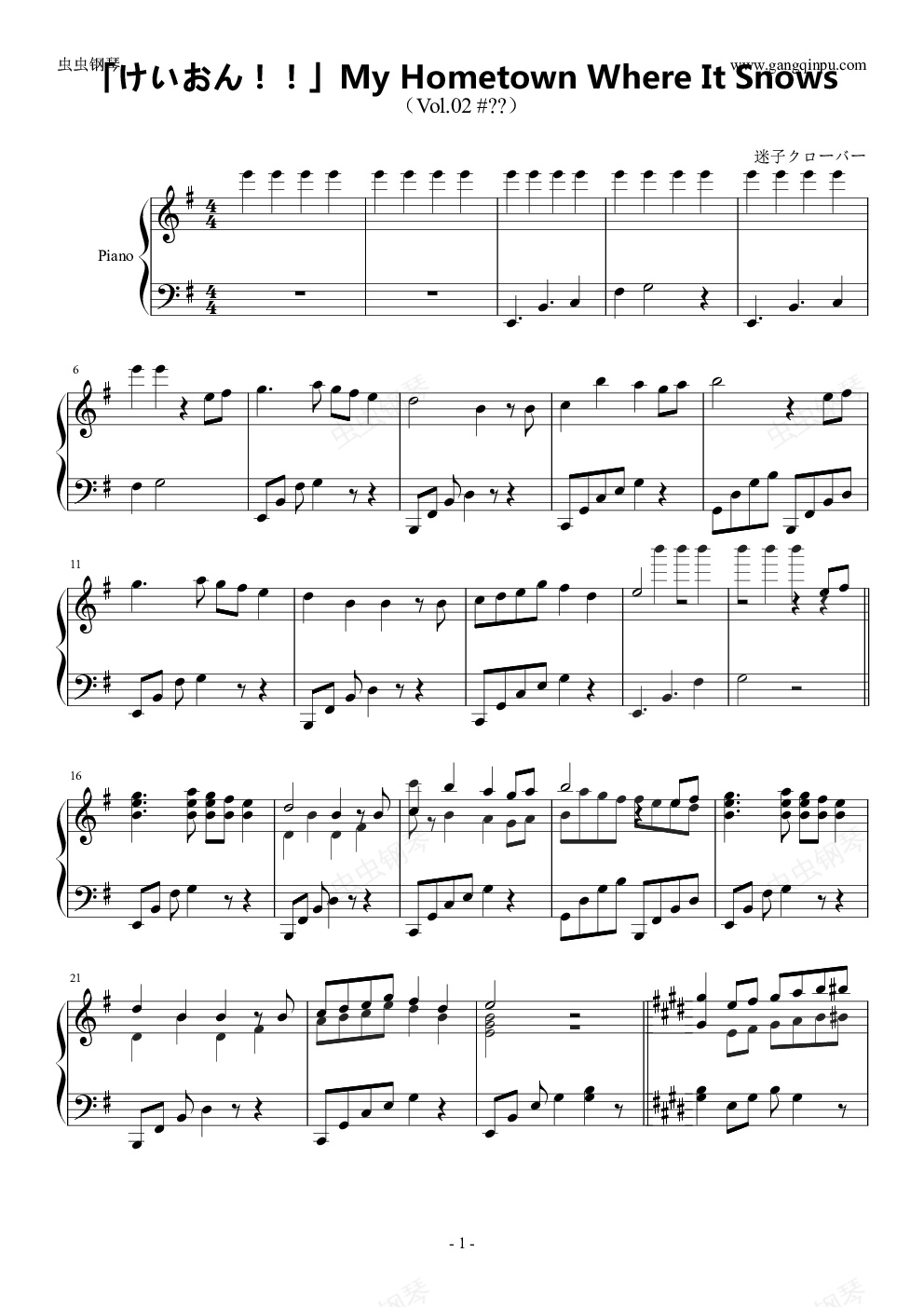 钢琴谱:「けいおん!!」My Hometown Where It Snows