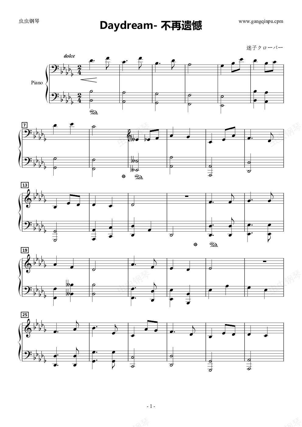 钢琴谱:Daydream- 不再遗憾